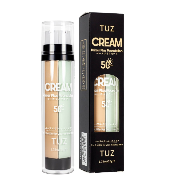 این محصول شامل دو پوکه جدا در داخل یک محفظه می باشد. با دو سری جداگانه که شامل یک کرم پودر قوی با SPF 50 و در یک ظرف دیگرش پرایمر قرار دار